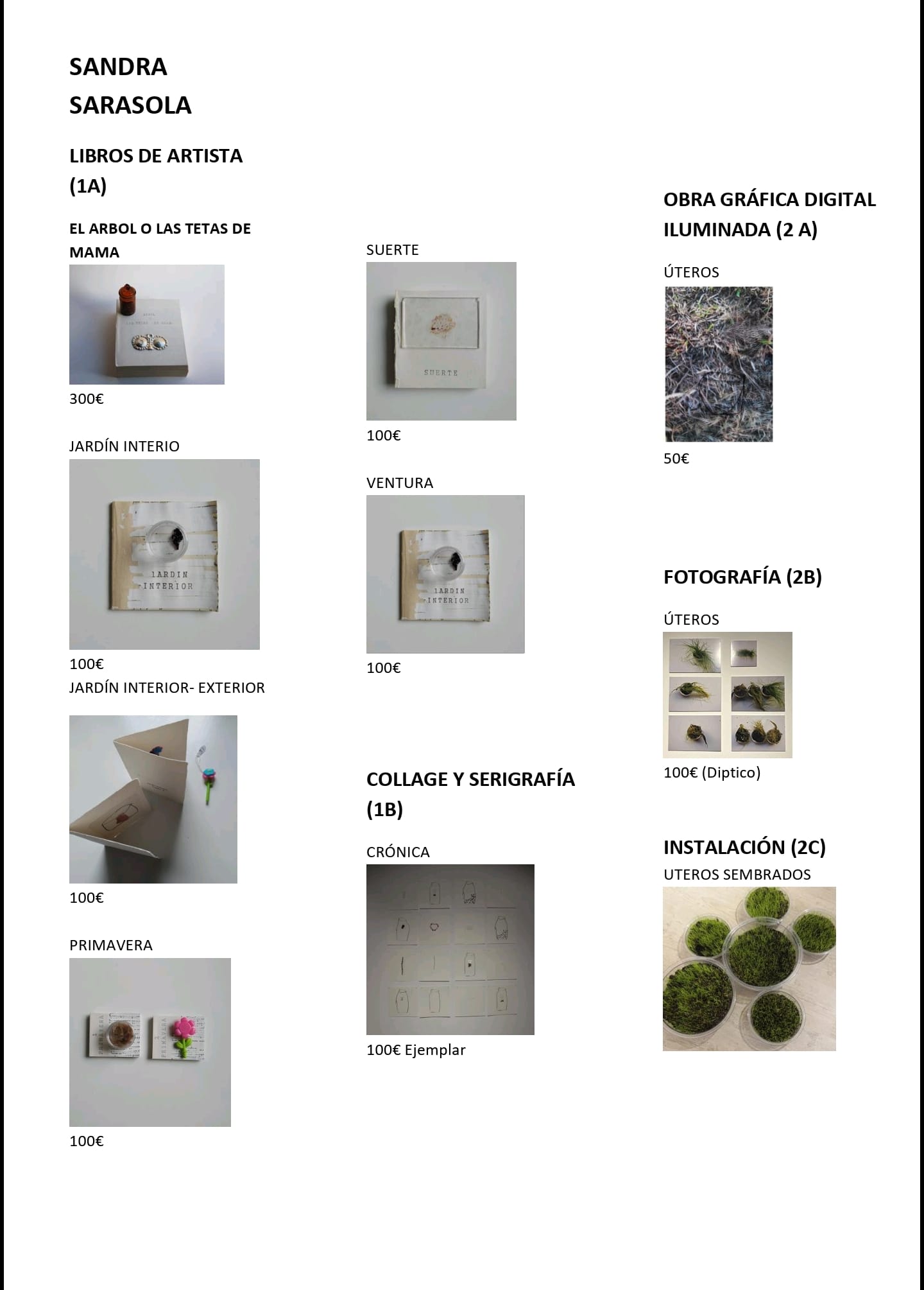 Sandra Sarasola entiende el arte como medio de expresión sincero e íntimo, que le permite explorar, mostrar y transmitir lo que siente ante situaciones o experiencias cotidianas, siempre desde una perspectiva propia y de género. Trabaja con y desde las tripas de su recorrido vital, explorando el pasado de sus progenitores para poder entender el suyo, momento que toma como punto de partida hasta llegar al presente, tras haber hecho paradas y reflexiones que la llevan hacia los temas mas significativos de su vida y que coinciden con los distintos proyectos del trabajo que nos muestra.