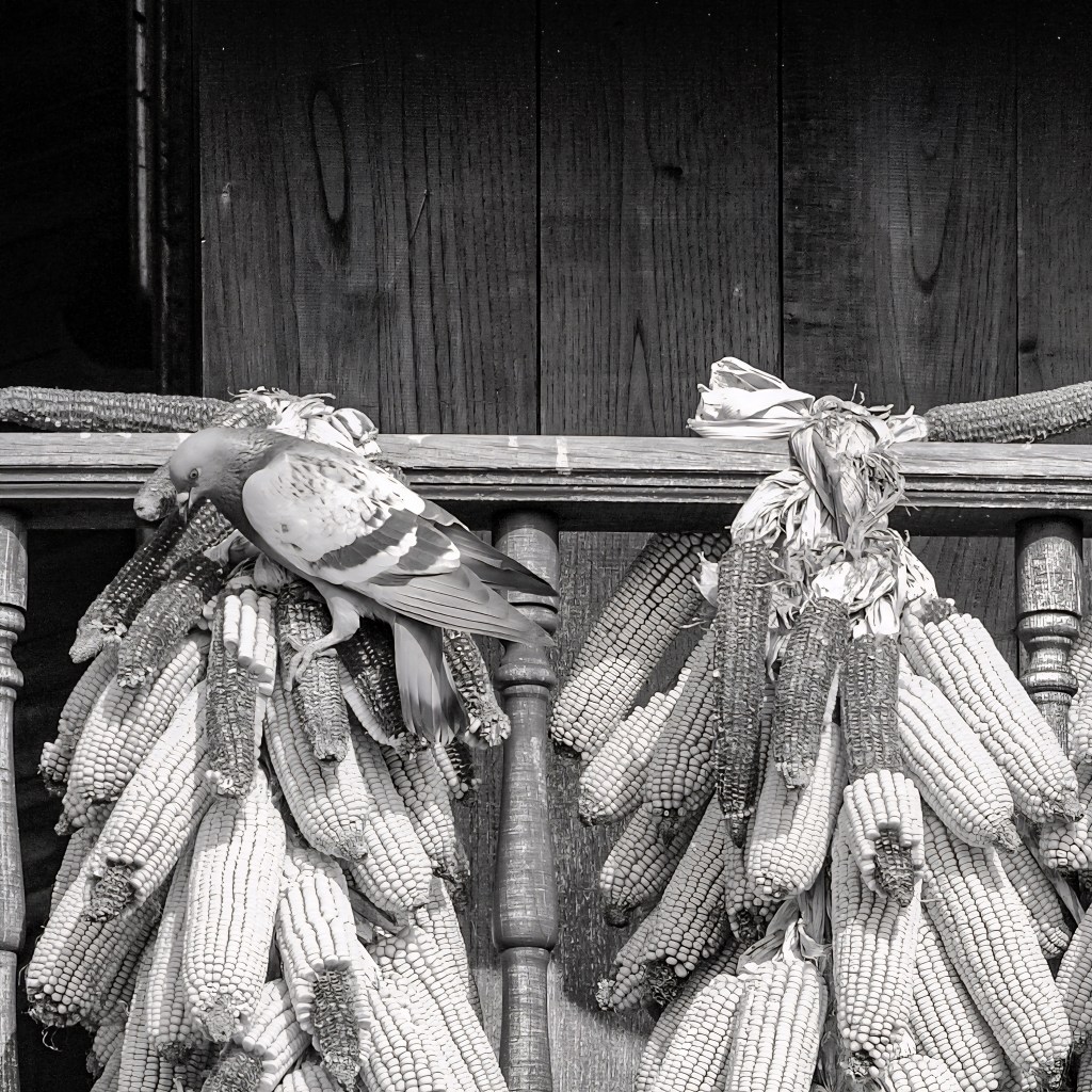 Más adelante encontraste la vida que me rodea, la leña que guardan bajo mi sombra, la paloma que picotea el maíz que cuelga de mis barandillas. Soy parte de un ritmo, de un gesto repetido durante generaciones. A mi alrededor se trabaja, se guarda, se alimenta, se espera.